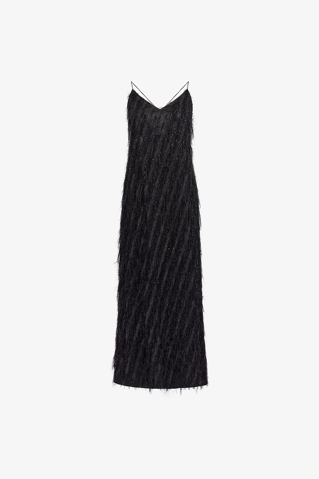 Black Fringed Maxi Dress