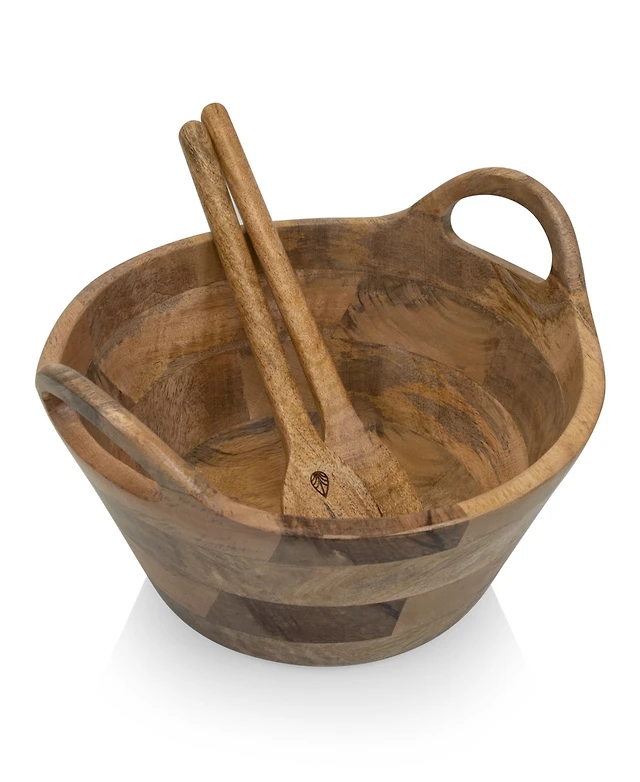 Portables Wood Salad Bowl with Servers 3 Piece Set