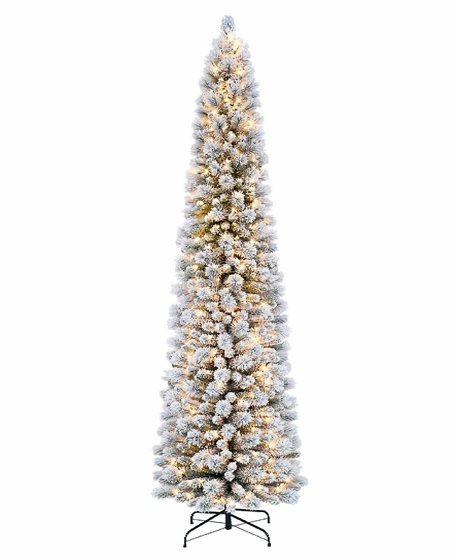 Puleo 6.5FT Pre-Lit Flocked Slim Fraser Fir Artificial Christmas Tree