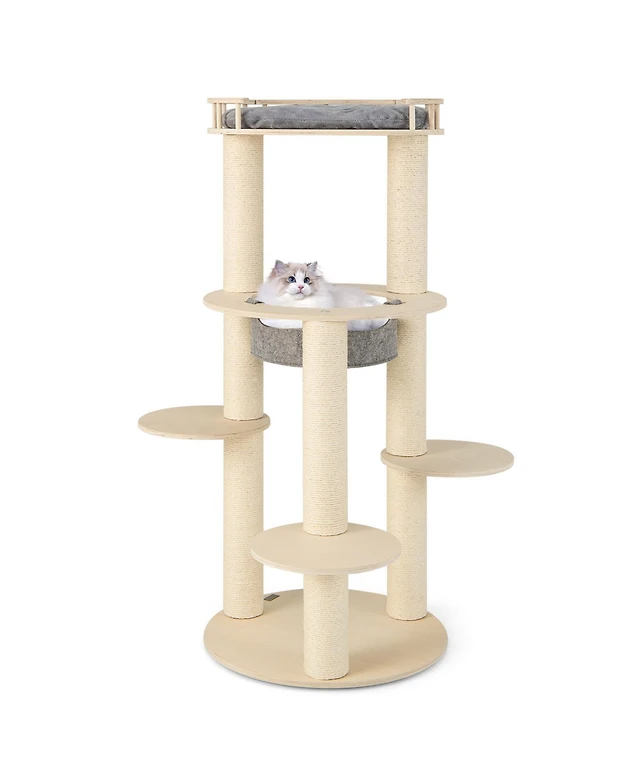 Modern Wooden Cat Tree with Perch Stylish & Cozy Cat Tower for Indoor Cats