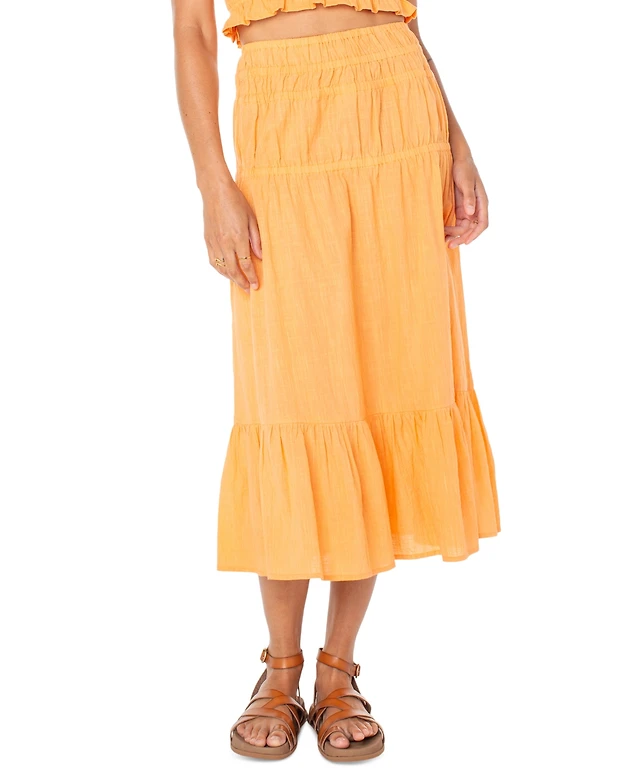 Roxy Juniors' Malia Cotton Solid Tiered Midi Skirt