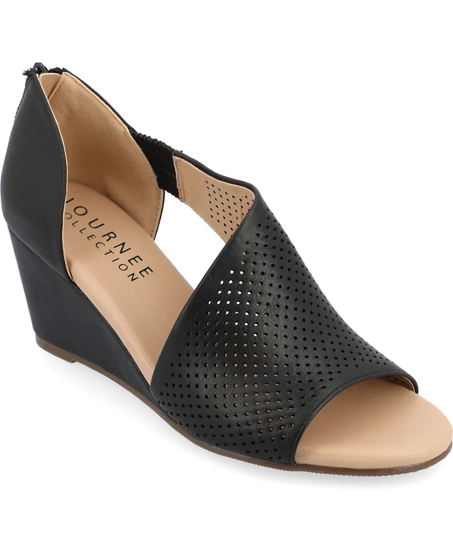 Journee Collection Women's Aretha Perforated Peep Toe Wedge Sandals