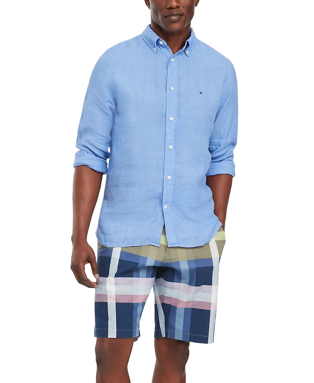 Tommy Hilfiger Men's Pigment-Dyed Linen Button-Down Long Sleeve Shirt
