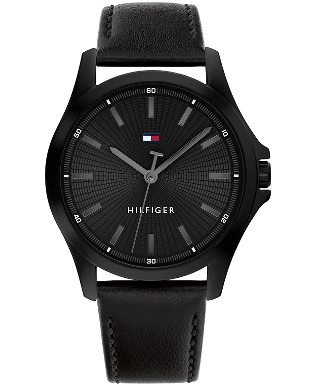 Tommy Hilfiger Men's Quartz Black Leather Strap Watch, 43mm