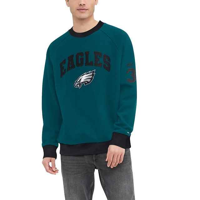 Men's Tommy Hilfiger Midnight Green Philadelphia Eagles Reese Raglan Tri-Blend Pullover Sweatshirt