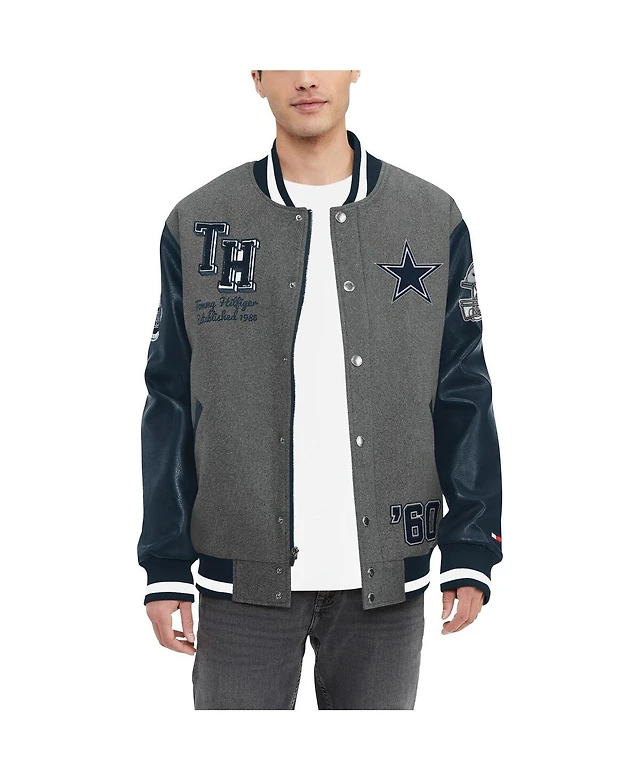 Men's Tommy Hilfiger Heather Gray, Navy Dallas Cowboys Gunner Full-Snap Varsity Jacket