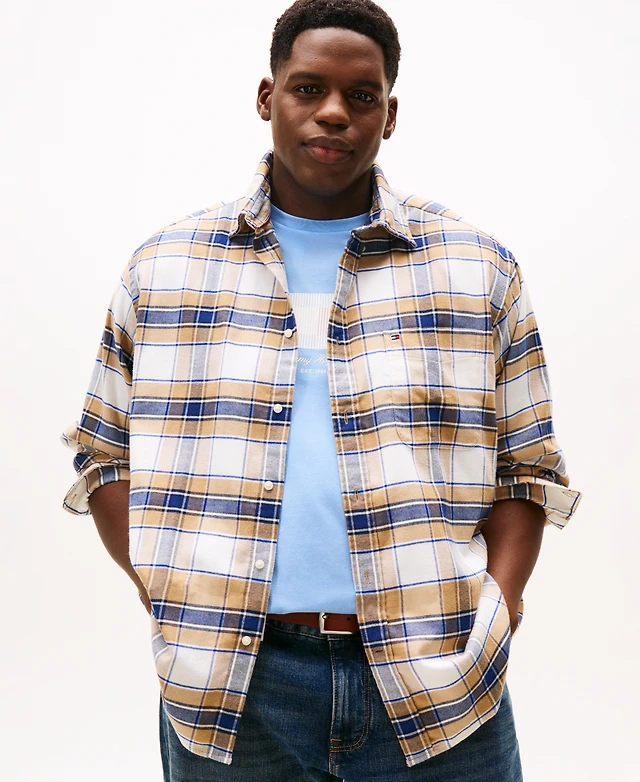 Tommy Hilfiger Men's Big and Tall Tartan Check Regular Fit Shirt