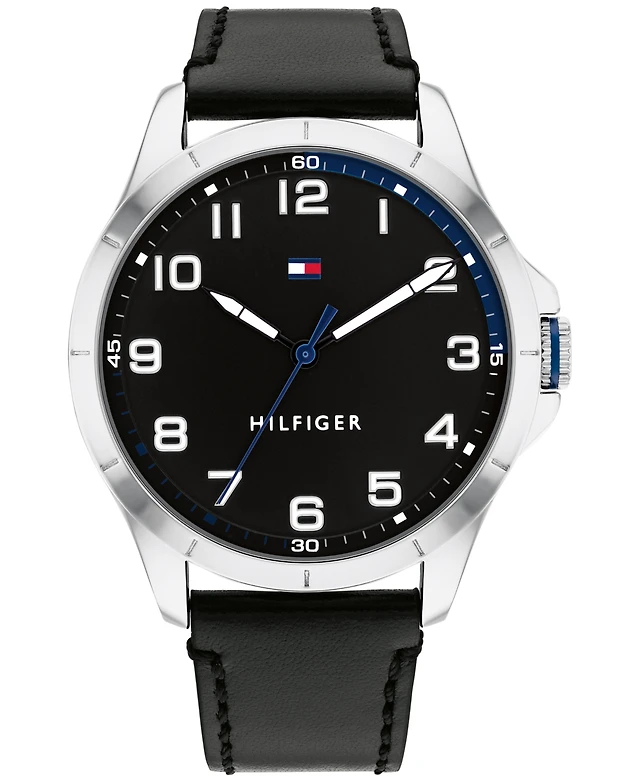 Tommy Hilfiger Men's Black Leather Strap Watch 44mm