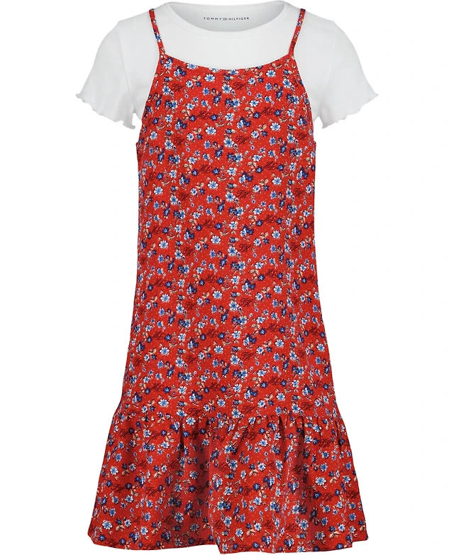 Tommy Hilfiger Big Girls 2-Piece Crewneck T-Shirt and Ditsy Print Dress Set