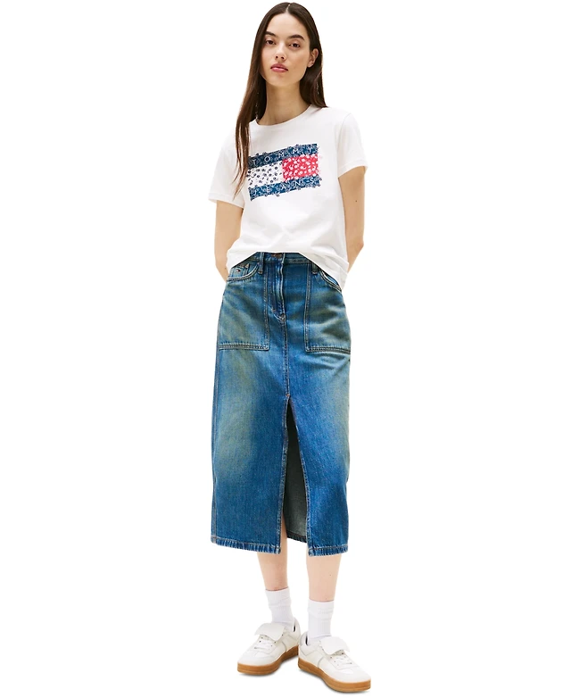 Tommy Jeans Women's Claire Cotton Front-Slit Denim Midi Skirt