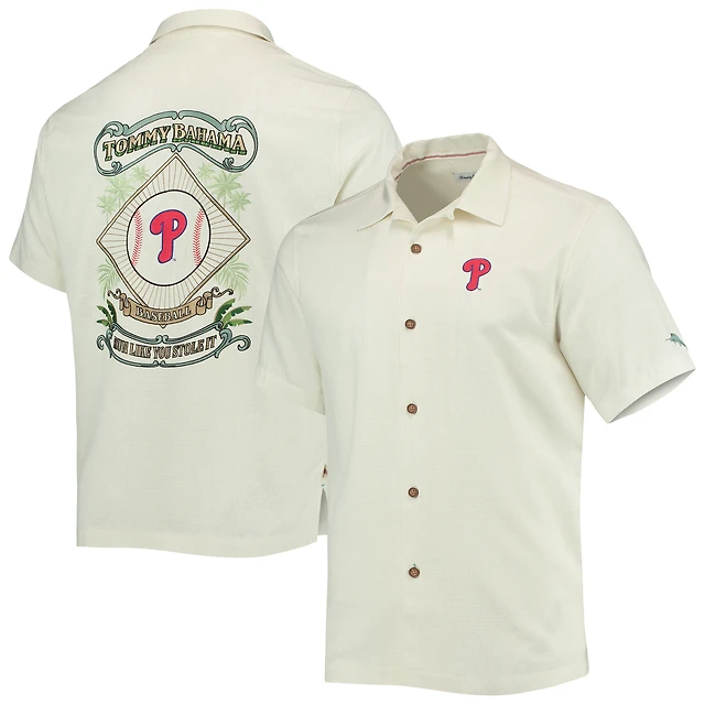 Men's Tommy Bahama Cream Milwaukee Brewers Baseball Camp Button-Up Shirt