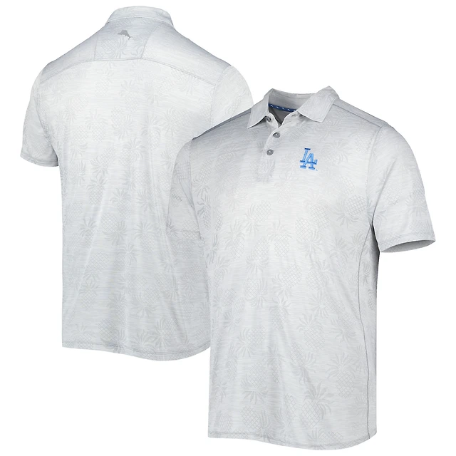 Men's Tommy Bahama Gray Los Angeles Dodgers IslandZone Pineapple Palm Coast Polo