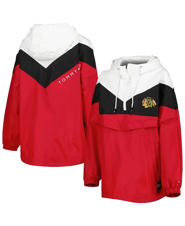 Men's Tommy Hilfiger Black/Gray Chicago Blackhawks Anorak Quarter-Zip Hoodie Jacket