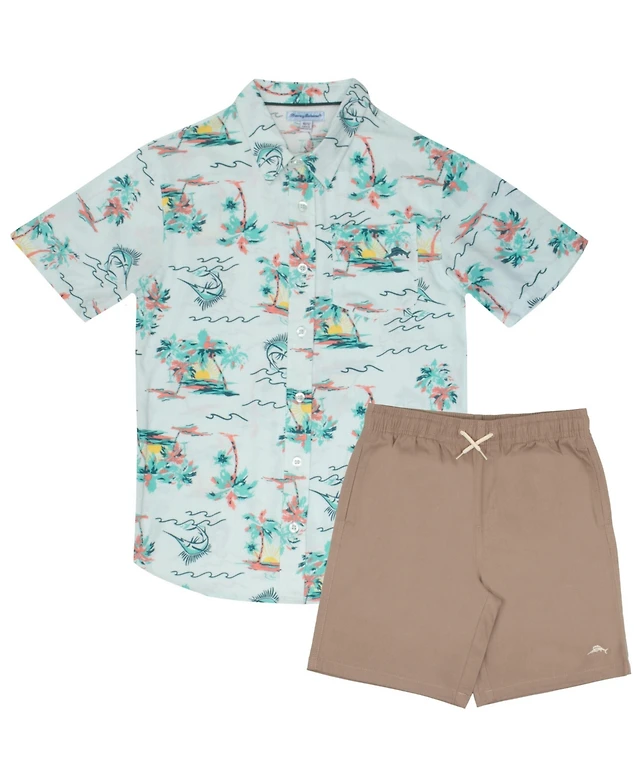 Tommy Bahama Boys 3 Piece Button Down Shirt, T-Shirt and Shorts Bundle Set