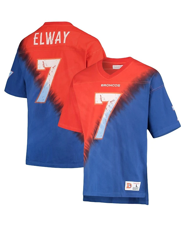 Men's Mitchell & Ness John Elway Orange, Royal Denver Broncos Retired Player Name and Number Diagonal Tie-Dye V-Neck T-shirt