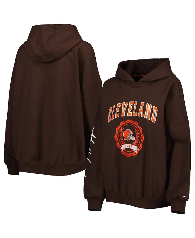 Women's Tommy Hilfiger Brown Cleveland Browns Becca Drop Shoulder Pullover Hoodie
