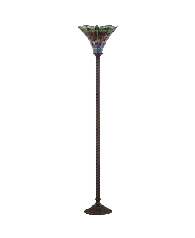 Amora Lighting Tiffany Style Dragonfly Torchiere Floor Lamp
