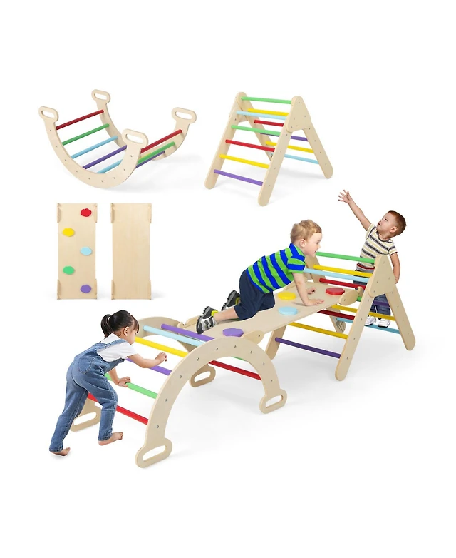 4-in-1 Multifunctional Wooden Climbing Toys with Rocker and Crawling Tunnel