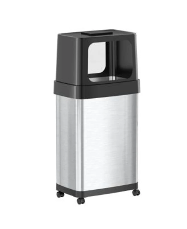 iTouchless Stainless Steel Dual Side Entry Trash Can with AbsorbX Odor Filter and Wheels, Silver