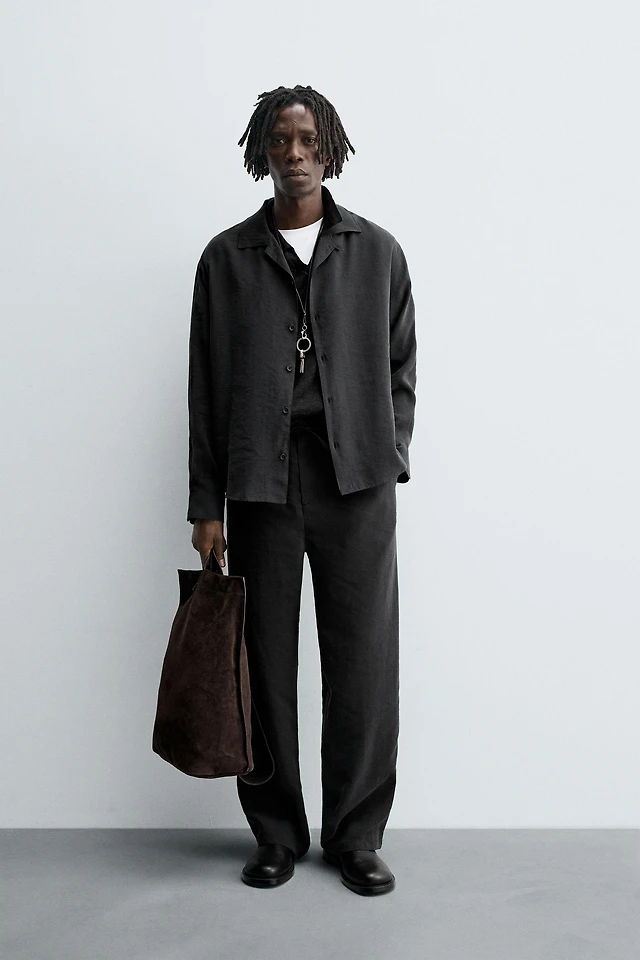 STRAIGHT-LEG COTTON-LINEN PANTS