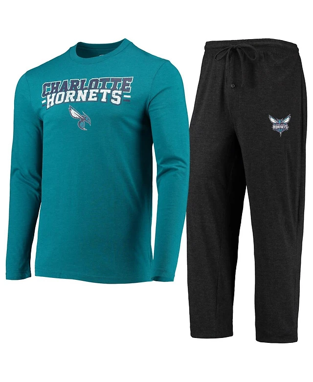 Men's Concepts Sport Black, Teal Charlotte Hornets Long Sleeve T-Shirt & Pants Sleep Set