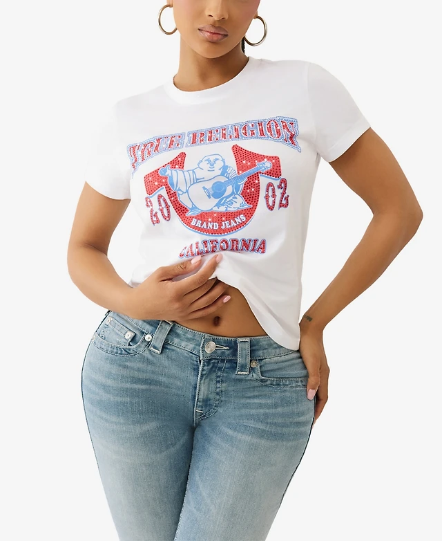 True Religion Women's Buddha Crystal Crew Neck T-Shirt