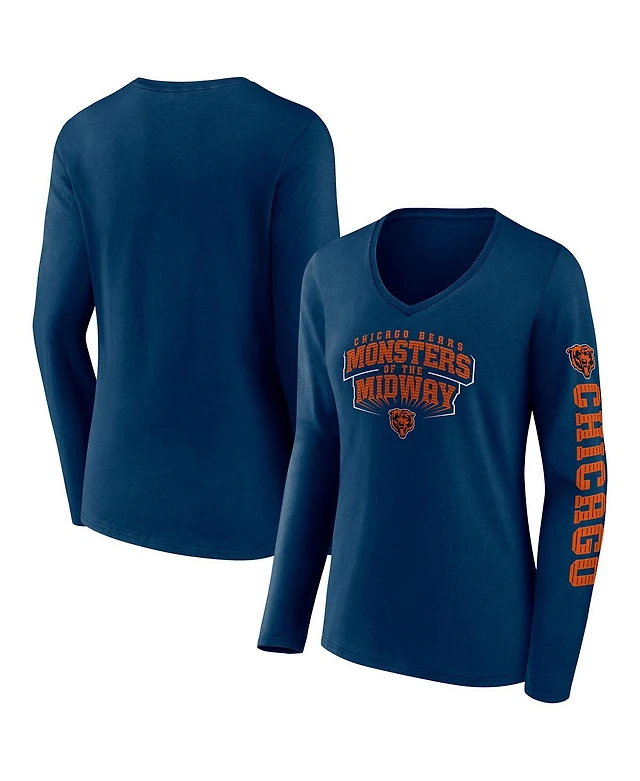 Women's Fanatics Navy Chicago Bears Hometown Sweep Long Sleeve V-Neck T-shirt