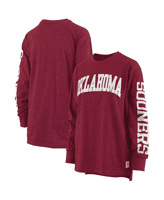 Pressbox Women's Heathered Crimson Oklahoma Sooners Two-Hit Canyon Long Sleeve T-Shirt
