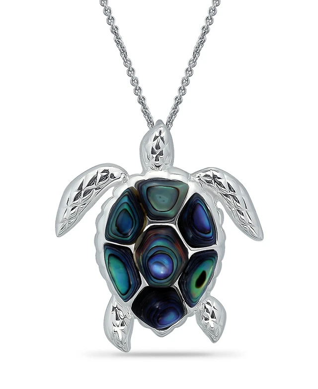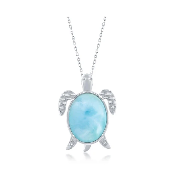 Sterling Silver Turtle, Seashell, Sand Dollar Larimar & Cz Round Necklace
