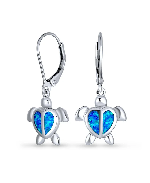Bling Jewelry Nautical Dangle Synthetic Opal Heart Turtle Drop Earrings Sterling Silver