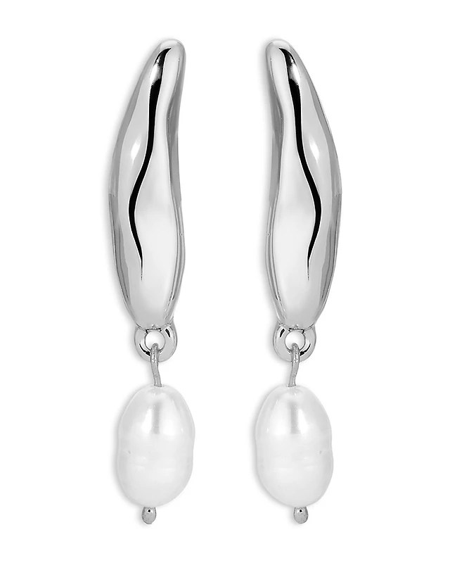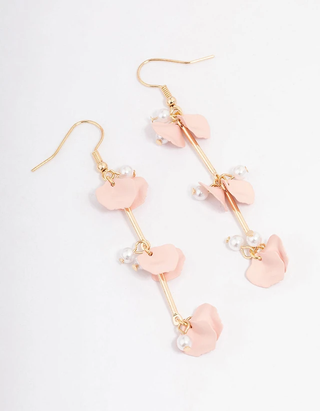 Blush Pearl & Petal Bar Drop Earrings