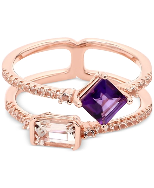 Amethyst (1/2 ct. t.w.), Morganite (1/2 ct. t.w.) & White Topaz (1/4 ct. t.w.) Double Row Ring in Gold-Plated Sterling Silver (Also in Garnet/Morganit