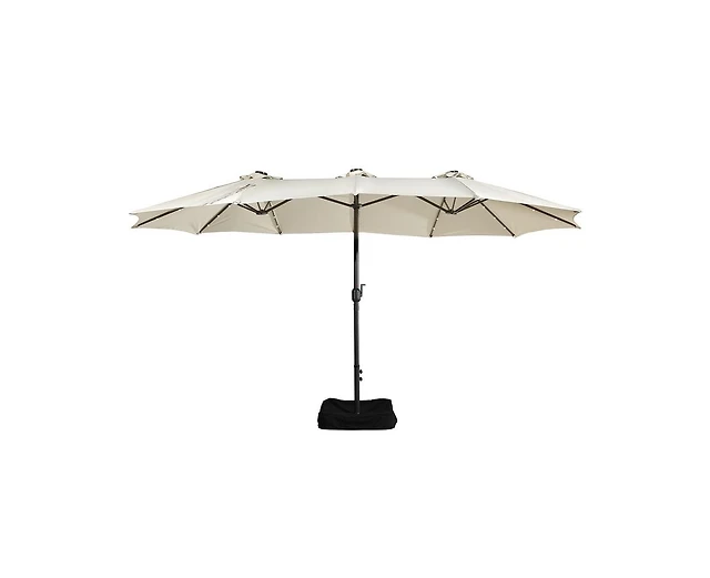 Gymax Outdoor 15' Double-Sided Patio Umbrella 48 Solar Led Lights Crank & Base Wine