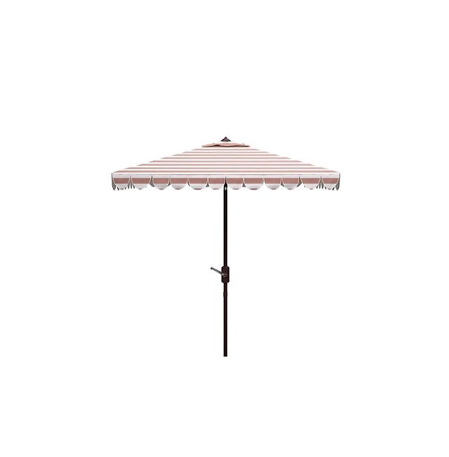 Safavieh Maui Single Scallop Striped 9Ft Crank Push Button Tilt Umbrella