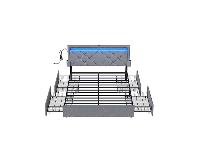 Gaomon King Size Velvet Bed Frame With 4 Convenient Storage Drawers Wingback Headboard With Charging Station