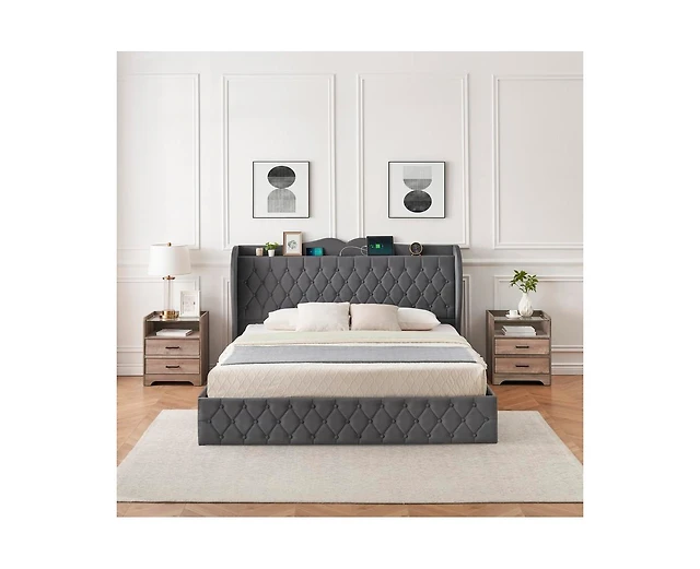 Streamdale Velvet Queen Storage Platform Bed with Wingback Headboard