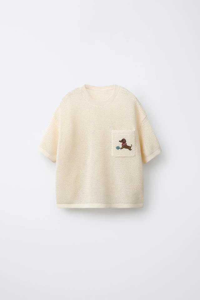 EMBROIDERED PETER PAN COLLAR T-SHIRT