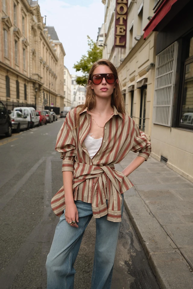 STRIPED WRAP SHIRT WITH BOW
