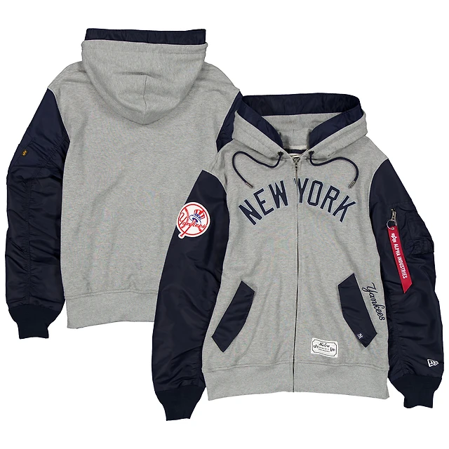 Men's New Era x Alpha Industries Grey/Navy New York Yankees MA-1 Full-Zip Fleece Hoodie Jacket