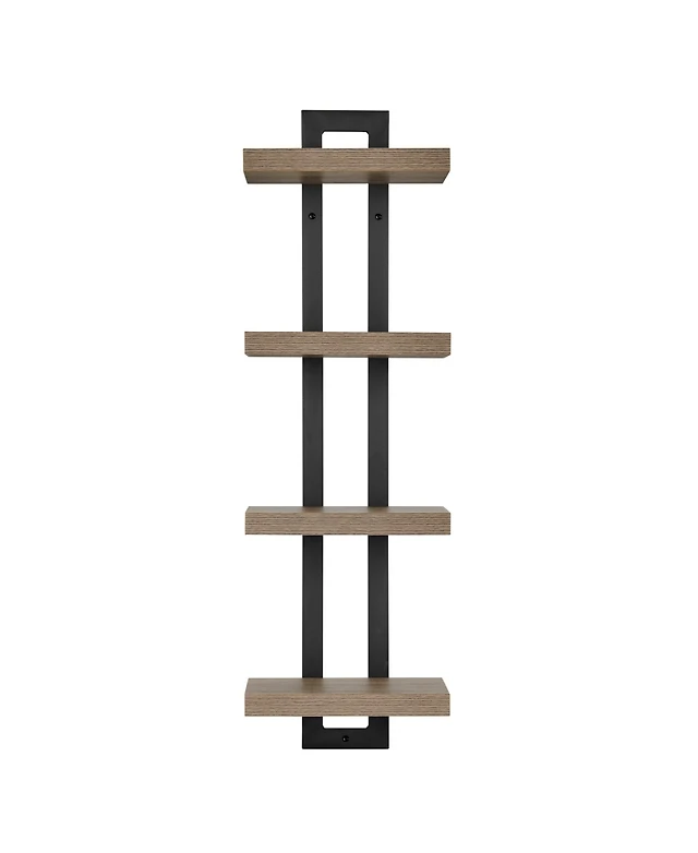 Rhodes 4 Tier Modern Floating Windowsill Wall Shelf Unit with Metal Frame and Light Walnut Mdf Shelves
