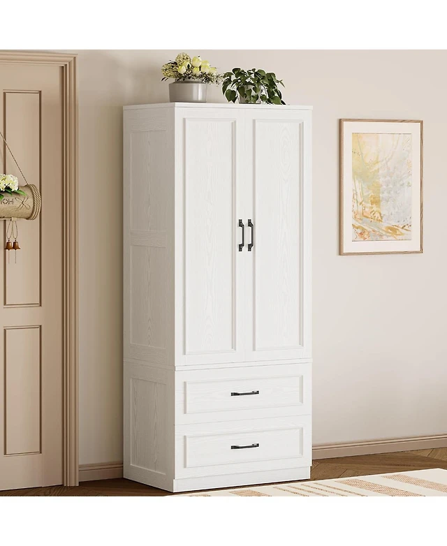 Homlux 29.5"W White Double Door Wardrobe with Shelf and Hanging Rod for Organized Living