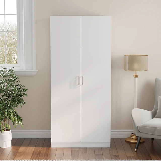 Homlux 29.5w White Double Door Wardrobe With Shelf Hanging Rod For Organized Living