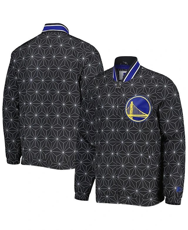 Men's Starter Black Golden State Warriors In-Field Play Fashion Satin Full-Zip Varsity Jacket