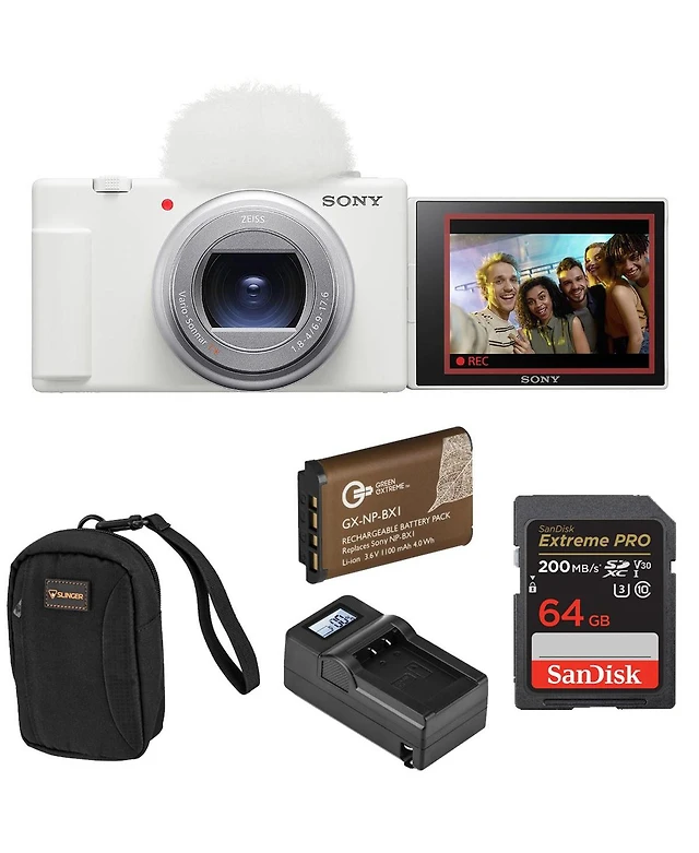 Sony Sony Zv-1 Ii Vlog Camera for Content Creators and Vloggers, Bundle 2x Extra Battery, Dual Charger, 64GB Sd Card, Camera Bag, Octopus Tripod,
