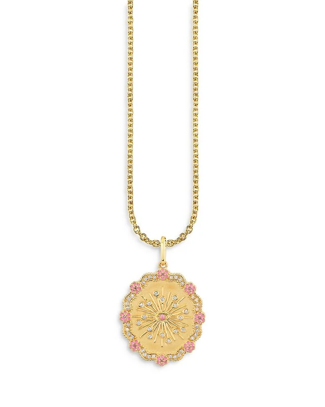 Wicked x Sydney Evan 14K Yellow Gold Glinda Wand Diamond & Pink Sapphire Burst Charm Necklace, 18"
