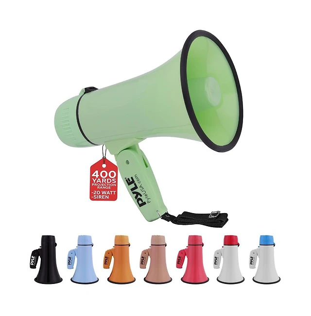 Pyle Portable Megaphone with Siren, 20 Watt Power, Aux Input for MP3, Automatic Siren, Lightweight