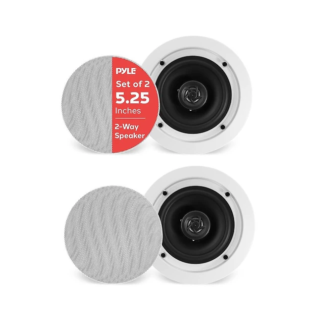 Pyle PDIC60 6.5" In-Wall/In-Ceiling 2-Way Stereo Speakers - Flush Mount, White, Pair