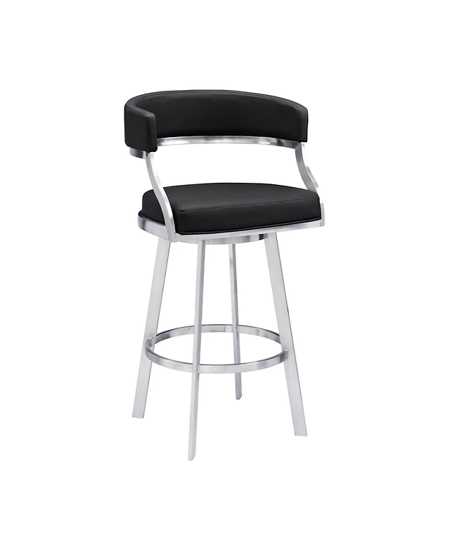 Saturn 30" Bar Height Swivel Gray Artificial leather and Brushed Stainless Steel Stool