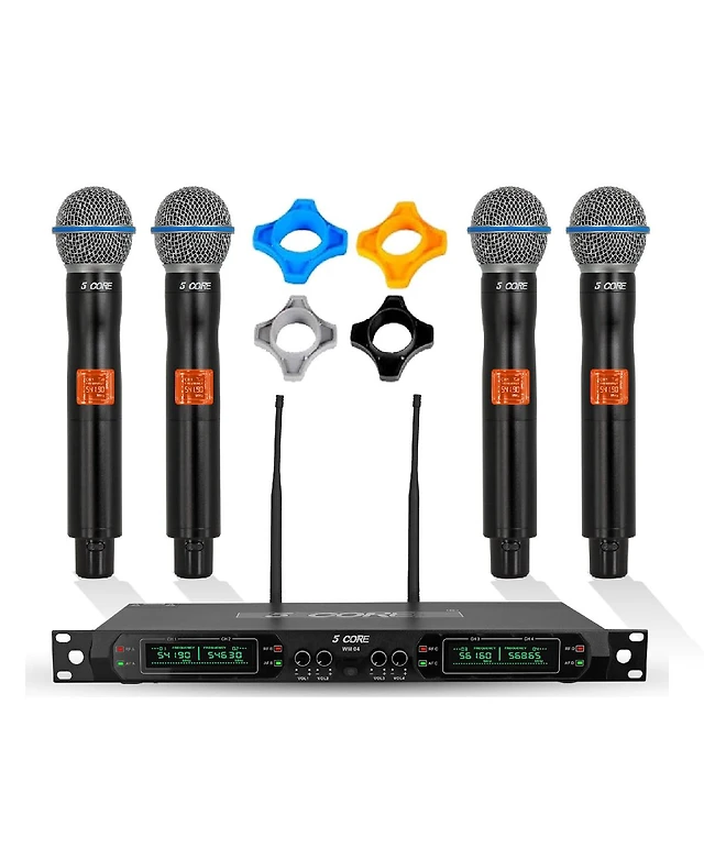 5 Core Wireless Microphone System 4 Channel Uhf 492F Range Portable Receiver w 4 Cordless Dynamic Mic