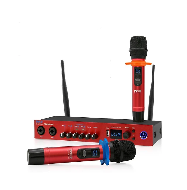 Pyle Uhf Wireless Microphone System with Bluetooth - Dual Channel, 2 Handheld Mics, Portable Mixer, Red